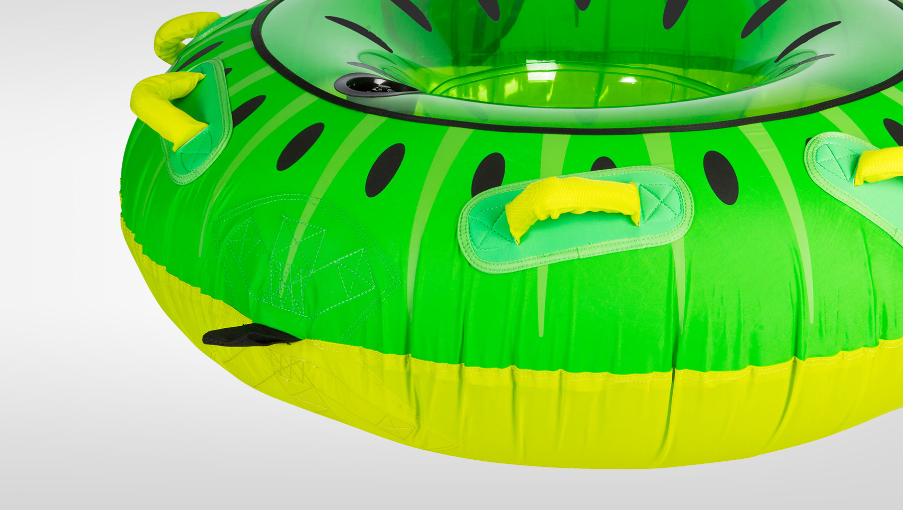 The Kiwi is a single rider, donut shaped tube that was designed with FUN in mind. Sit in the Kiwi with your feet forward or lay on your belly to put yourself in the heart of the action. The Kiwi has 2 sets of handles in just the right spot for either riding style. You will enjoy ultimate comfort with soft foam handles with built in knuckle guards. The 2-Way Boston valve makes inflation and deflation a snap and you’re sure to turn heads with this cool fruit inspired design. Get yourself a Kiwi and grab a slice of the sweet fruity fun!