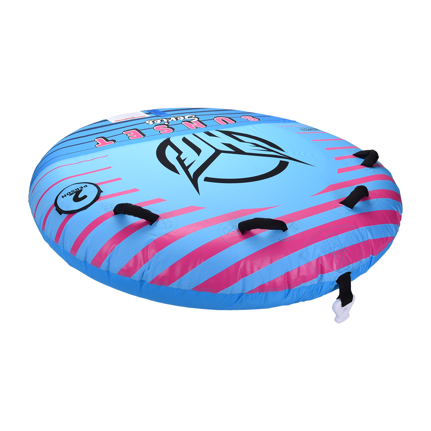 Traditionally, there has been very little difference between round, deck style tubes. You can buy one from any inflatable maker and they’re basically all the same. That is…until now. With the addition of HO Sports’ Shoftshell Technology, now you can tube all day without worrying about the abrasion or “tube rash” that you would get from a traditional nylon covered tube. This new technology is the best thing to happen to tubes since the introduction of the nylon cover. So, grab a friend and hop aboard this 2 rider deck tube and have fun out there!