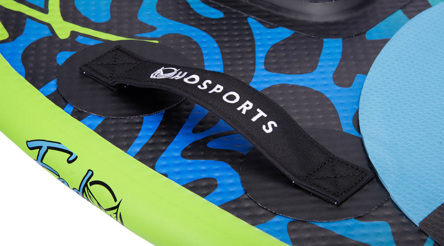 Easy to inflate & deflate with a surf inspired shape, the FAD boards are built with a durable drop-stitch construction making them rigid when inflated and super compact for storage when deflated. Their Machined EVA Traction Pads makes them grippy for wakesurfing and wakeriding while the soft EVA handle hook and dual handles permit easy getups and hands free riding. You can kneel, lay, stand or sit on the multi-functional FAD boards. Endless riding possibilities await, unlocking a realm of pure imagination for you, your friends, and family. Suitable for all ages, the FADs are sure to capture attention on your lake this summer, bringing joy and excitement to everyone!