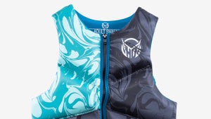 The Mission vest is a stylish, comfortable fitting vest that provides the flexibility you want for all water sports and is certified as a Harmonized Approval Personal Flotation Device. It’s 3 dimensional cut provides incredibly sleek fit, while independently segmented panels give seemingly endless hinge points for unmatched flexibility and performance. With superior drainability, the Mission quickly releases water to keep the skier lighter and drier. The strategically placed belt keepers allows the user to keep straps tucked away from limbs. Oversized armholes and a front zip entry allow for maximum maneuverability and reach and easy entry.